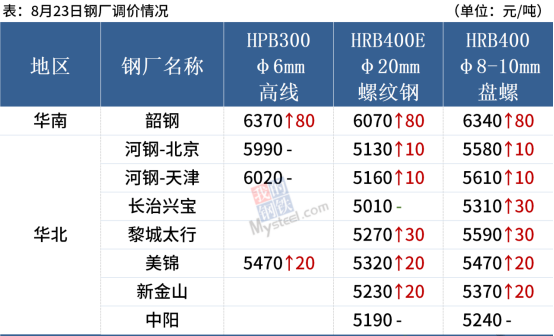 23日,全國7家鋼廠調整建筑鋼材出廠價0-80元/噸。