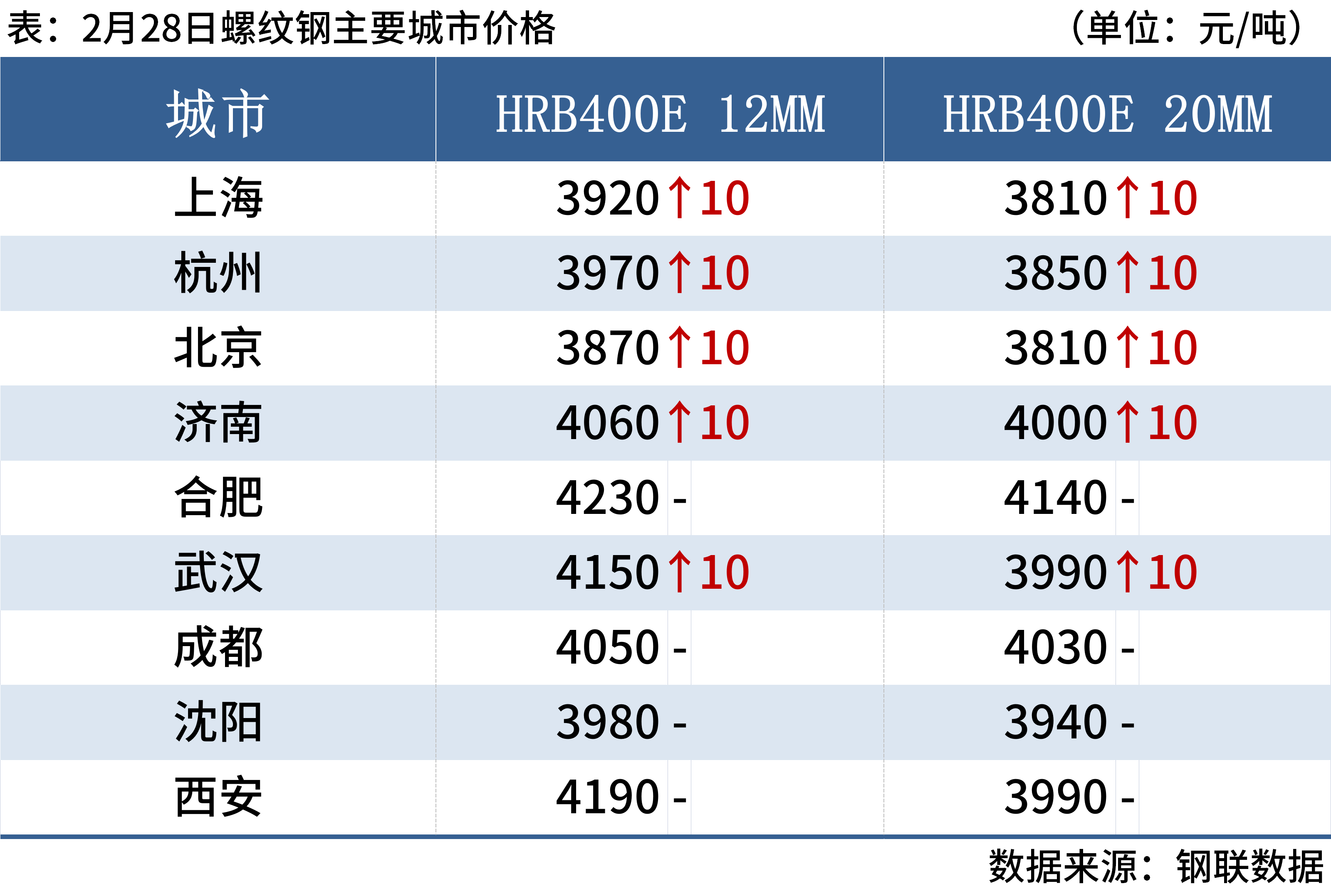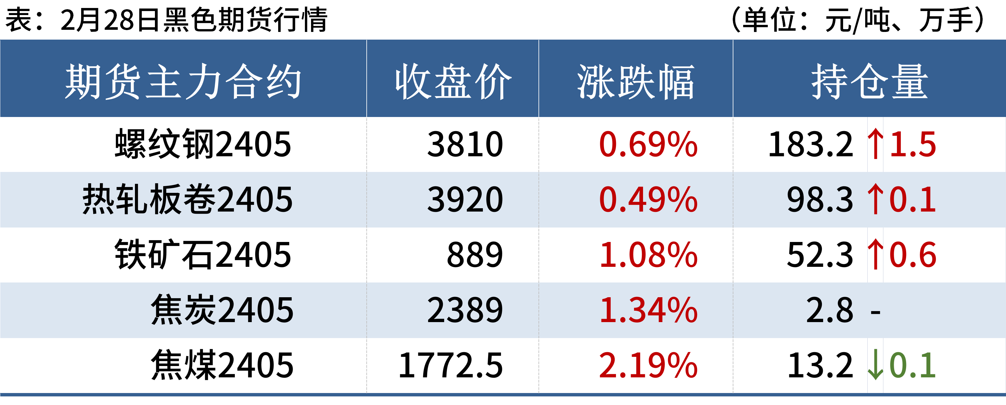 螺紋鋼:2月28日,全國(guó)31個(gè)主要城市20mm三級(jí)抗震螺紋鋼均價(jià)3997元/噸,較上個(gè)交易日漲3元/噸。短期來(lái)看,目前電爐復(fù)產(chǎn)在即,但部分高爐有減產(chǎn)情況,產(chǎn)量維持低位;節(jié)后需求整體恢復(fù)并不樂(lè)觀,尤其是新開(kāi)工及復(fù)工數(shù)據(jù)偏差。同時(shí)焦炭提降等原料下跌,成本支撐不足。因此從基本面來(lái)看,市場(chǎng)仍然處于偏弱格局。需關(guān)注宏觀方面的利好預(yù)期,對(duì)市場(chǎng)信心或有一定提振,預(yù)計(jì)29日國(guó)內(nèi)建筑鋼材市場(chǎng)價(jià)格或?qū)⒗^續(xù)震蕩為主。