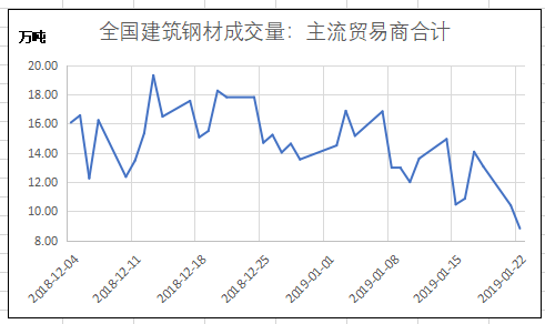◎22日,Mysteel全國貿易商建材日成交量8.83萬噸,較1月21日減少1.58萬噸。
