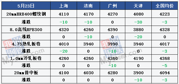 ◎建材成交量:5月23日,Mysteel全國貿易商建材日成交量17.05萬噸,較5月22日減少1.47萬噸。