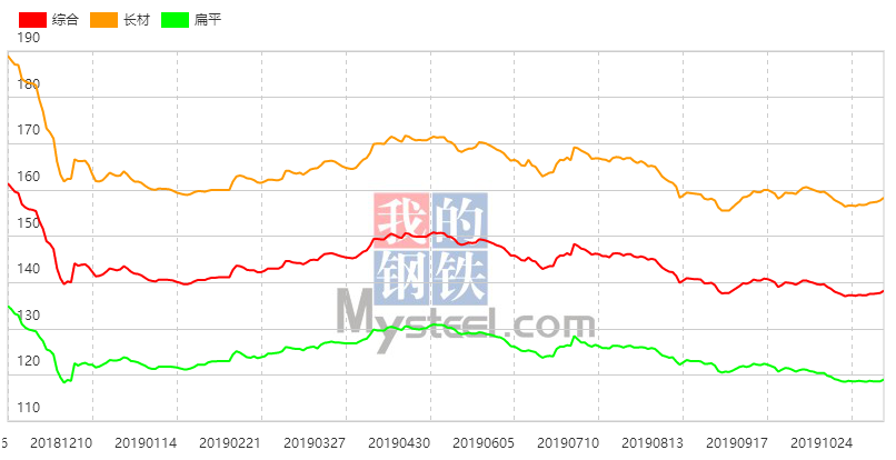11月6日,國(guó)內(nèi)鋼材指數(shù)(Myspic)綜合指數(shù)報(bào)138.23(絕對(duì)價(jià)格指數(shù)3898.2),較上一交易日上漲0.36%。其中,螺紋鋼指數(shù)報(bào)152.66(絕對(duì)價(jià)格指數(shù)3858.8),較上一交易日上漲0.58%;熱卷指數(shù)報(bào)129.31(絕對(duì)價(jià)格指數(shù)3625.7),較上一交易日上漲0.38%。
